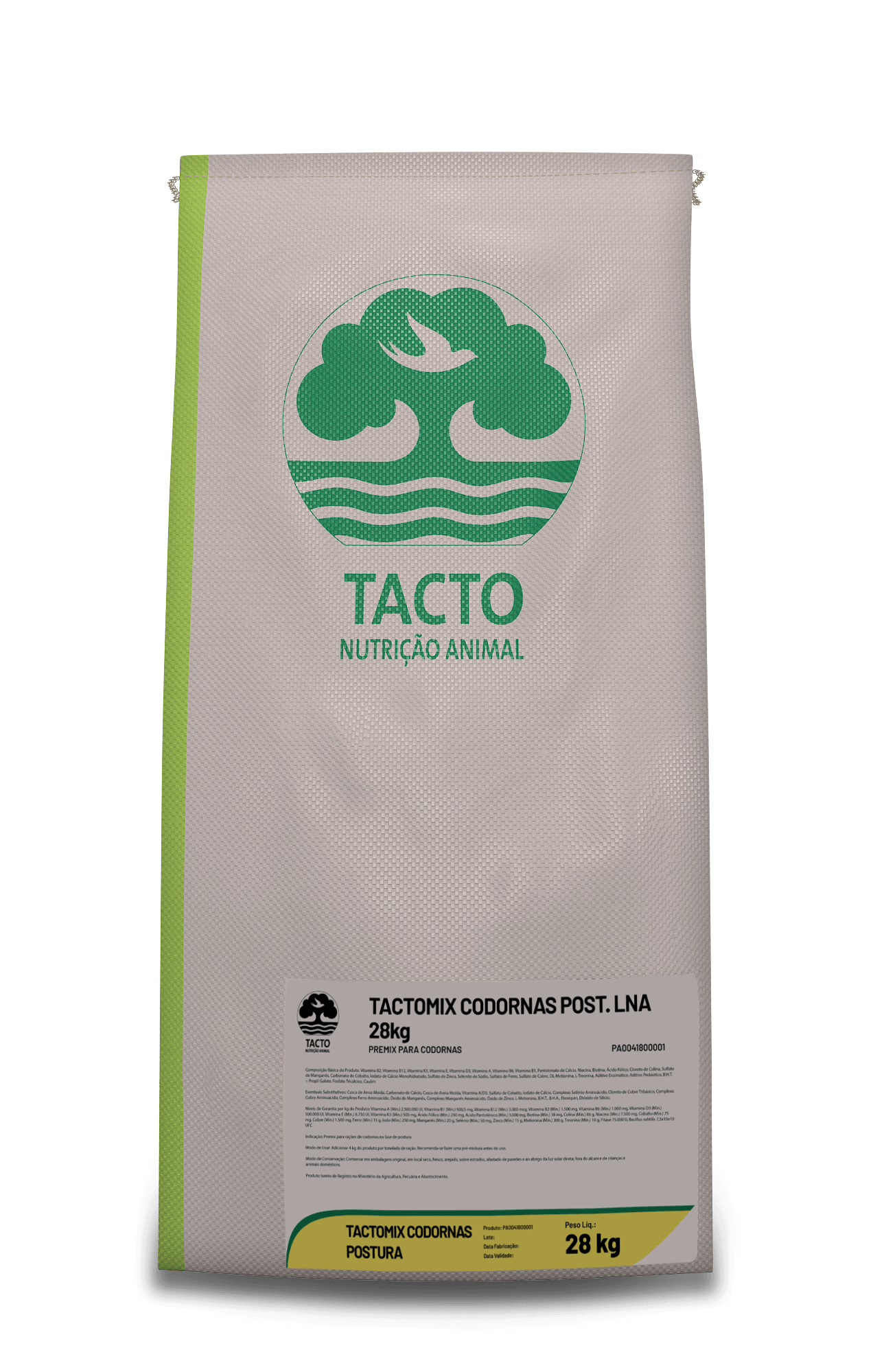 Classificação: Premix para codornas. Indicação: Premix para rações de codornas na fase de postura. Inclusão: 4 kg do produto por tonelada de ração.