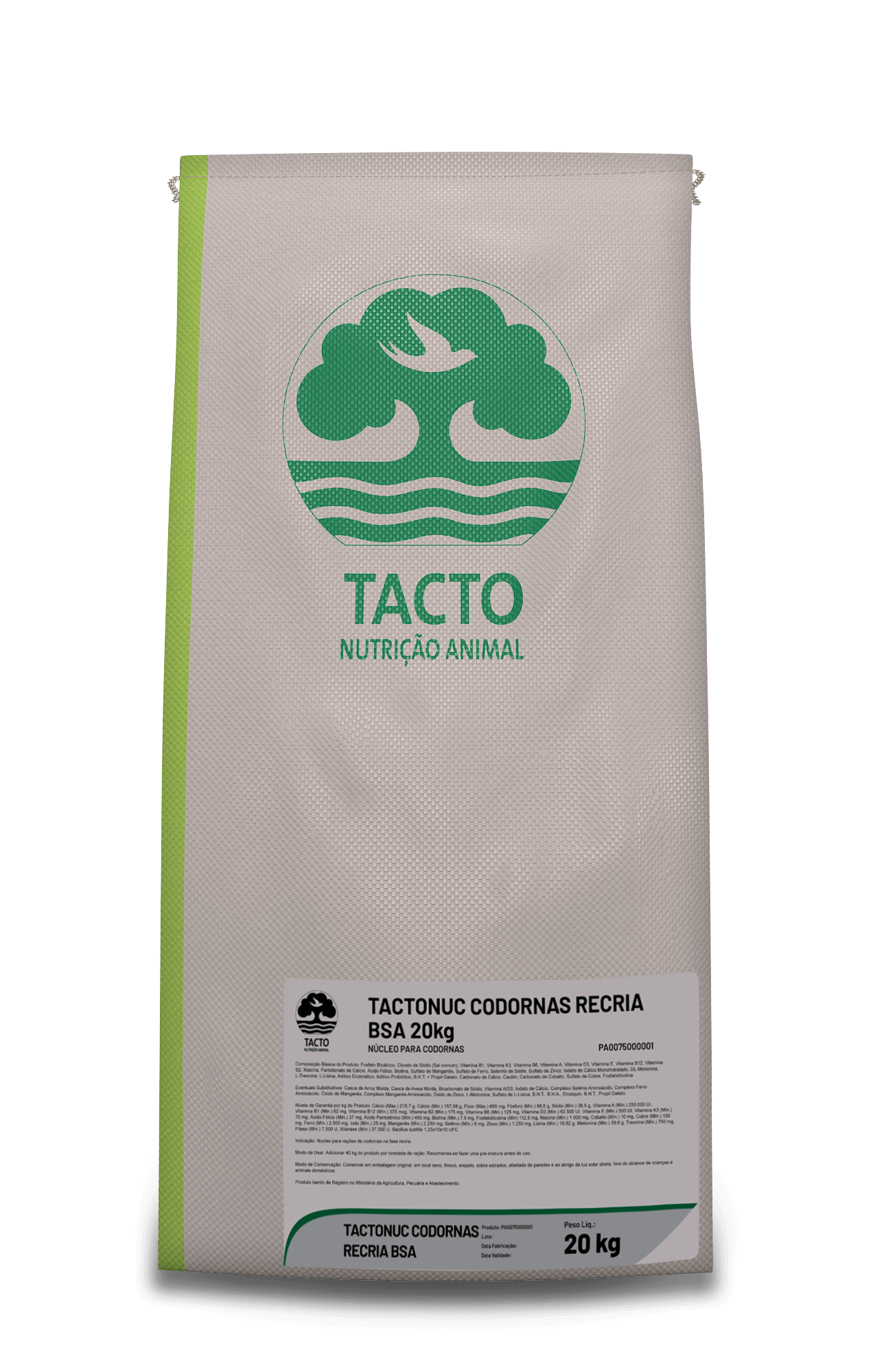 Classificação: Núcleo para codornas. Indicação: Núcleo para rações de codornas na fase de recria. Inclusão: 40 kg do produto por tonelada de ração.